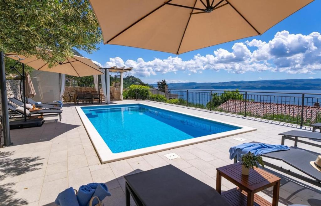Proudly offer beautiful stone villa with pool and sea view. In a peaceful and picturesque settlement above Omiš lies this beautiful stone villa that perfectly combines traditional Dalmatian charm with modern comfort. Surrounded by greenery and a Mediterranean garden, the villa offers complete privacy and tranquility, while from its terrace and pool, there is a breathtaking view of the sea and islands. The house spreads over two floors. On the ground floor, there are 3 bedrooms and two elegantly designed bathrooms, ideal for a comfortable stay. The upper floor features a spacious living room with a dining area and a modernly equipped kitchen, as well as an additional bedroom and bathroom. The interior of the villa exudes warmth and elegance; stone walls, wooden details, and carefully selected furniture create an authentic Dalmatian ambiance, while modern appliances and high-quality materials ensure a high level of comfort. The outdoor area is equally impressive; the spacious terrace with a pool, sunbathing area, and relaxation space is a perfect place to enjoy the sun, while the Mediterranean garden filled with olive trees, lavender, and rosemary offers complete tranquility. This villa represents a perfect blend of tradition and modern luxury, ideal as a family residence or an investment in tourist rentals with excellent potential.