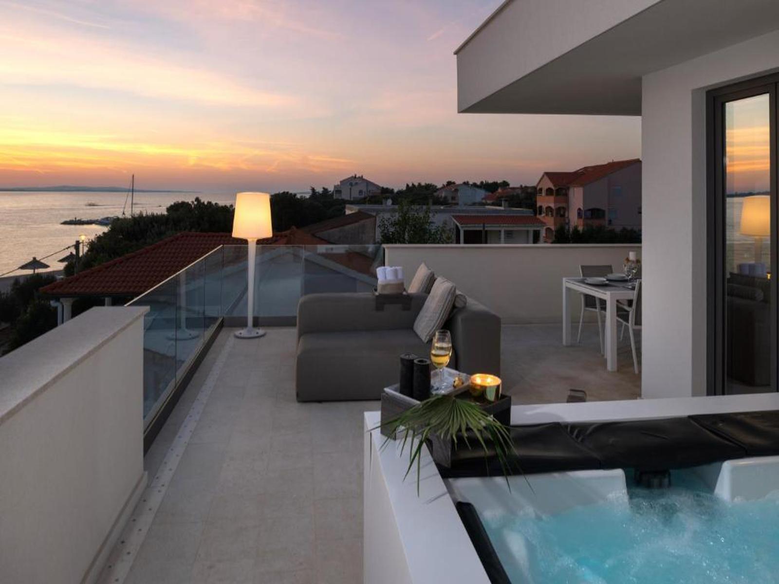 Second floor – partially covered terrace, sauna and jacuzzi
